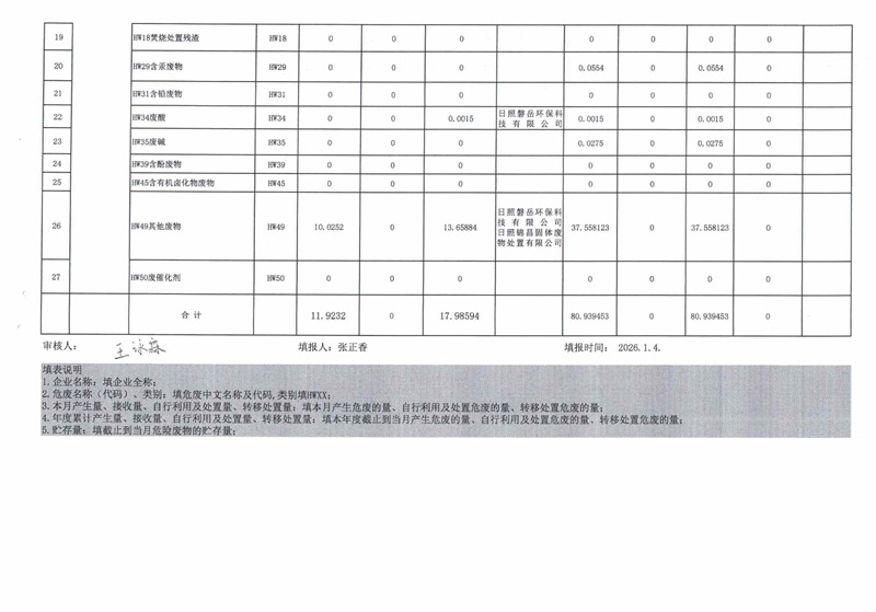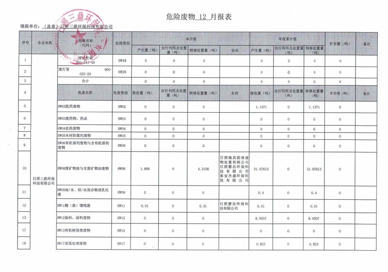 危险废物12月报表