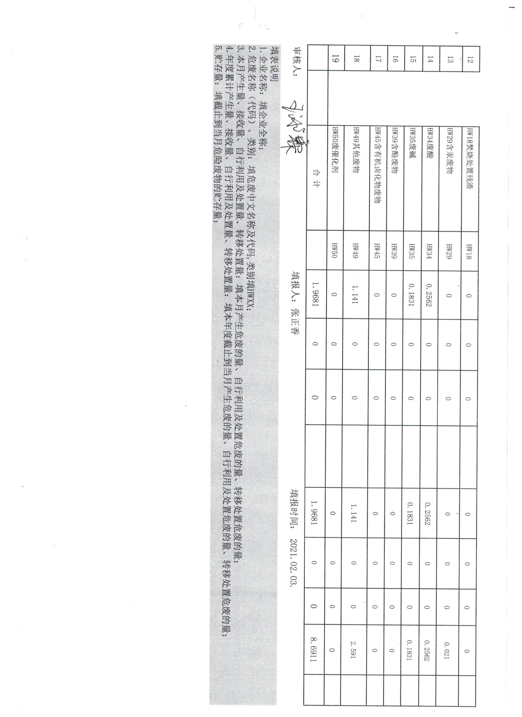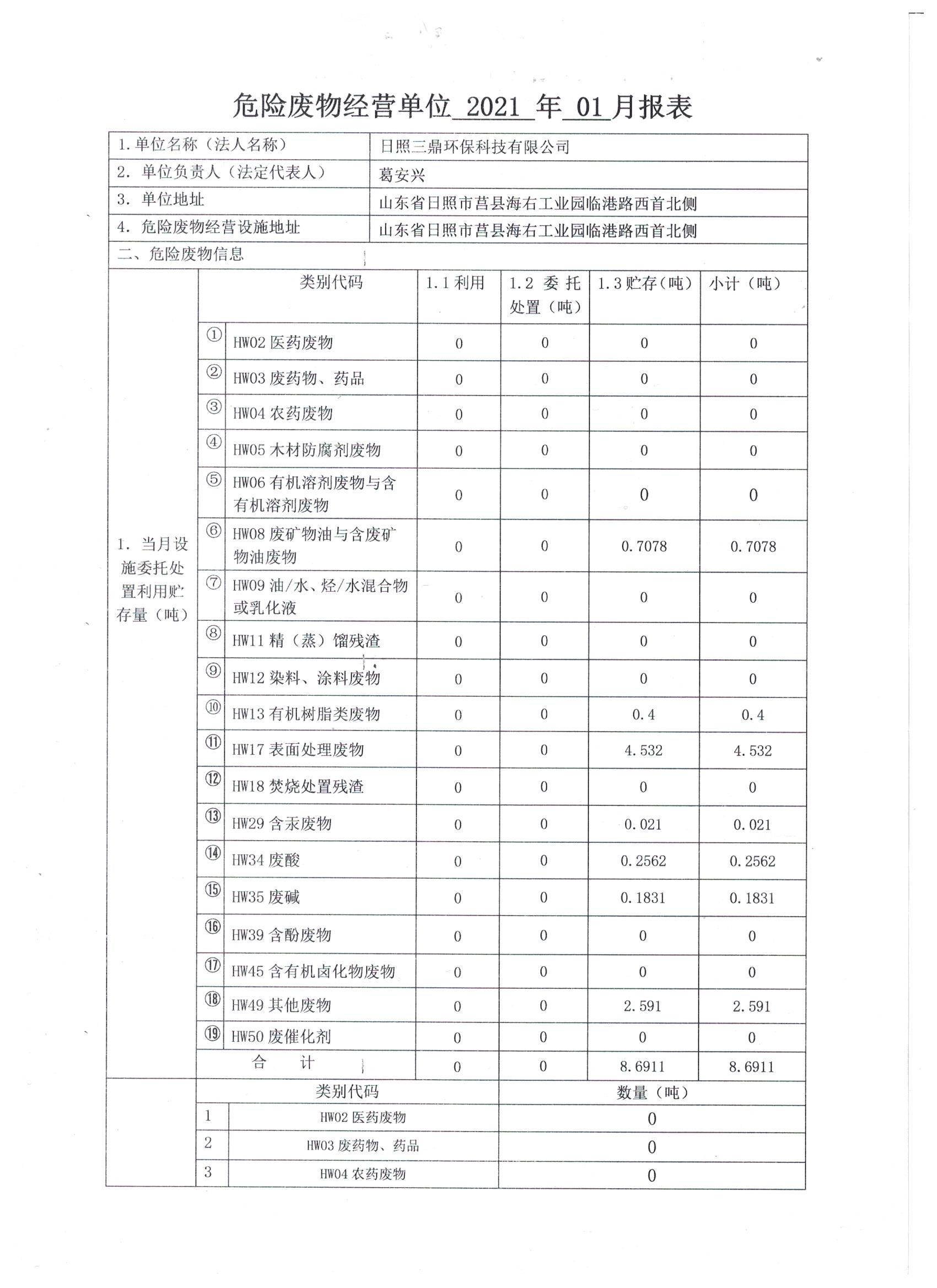 2021年1月经营产生月报