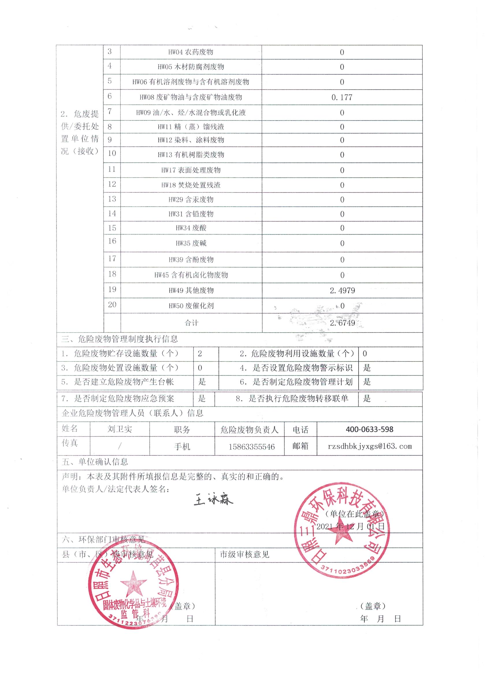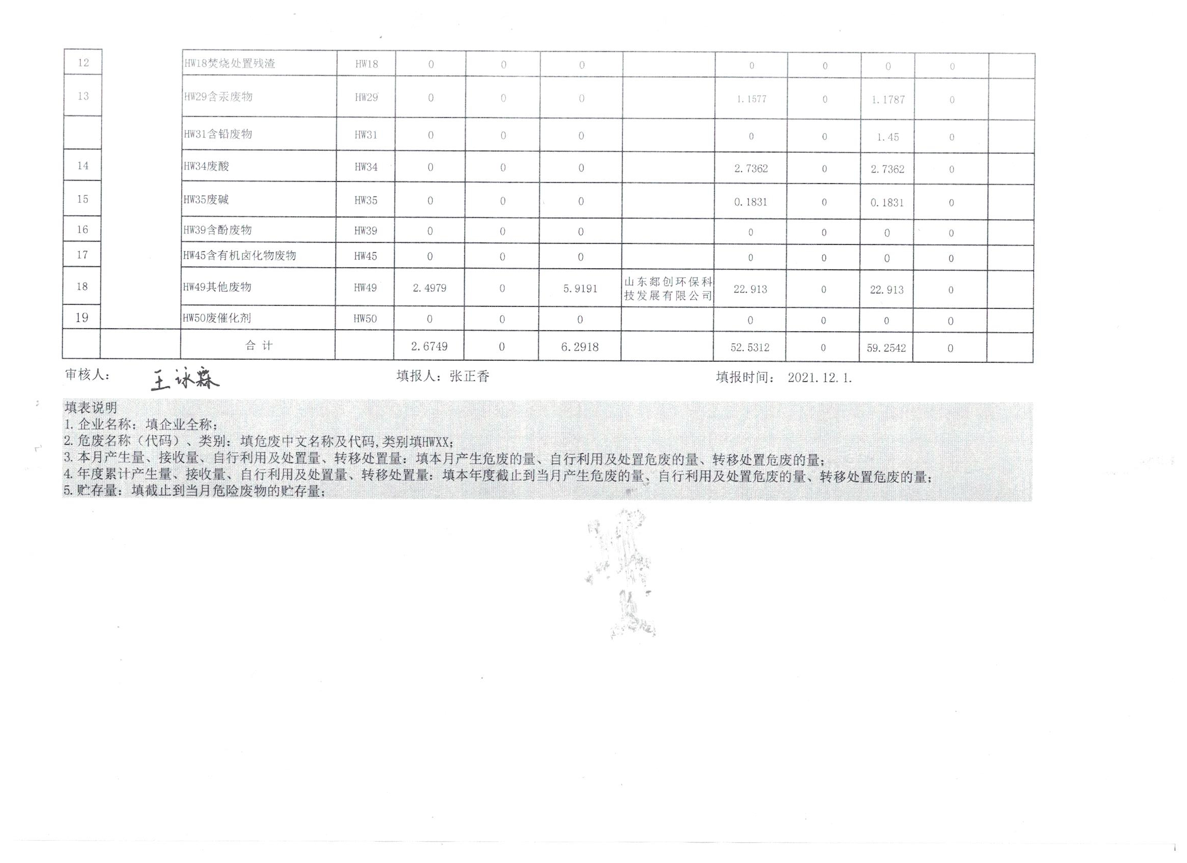 危险废物生产单位2022年1季度报表