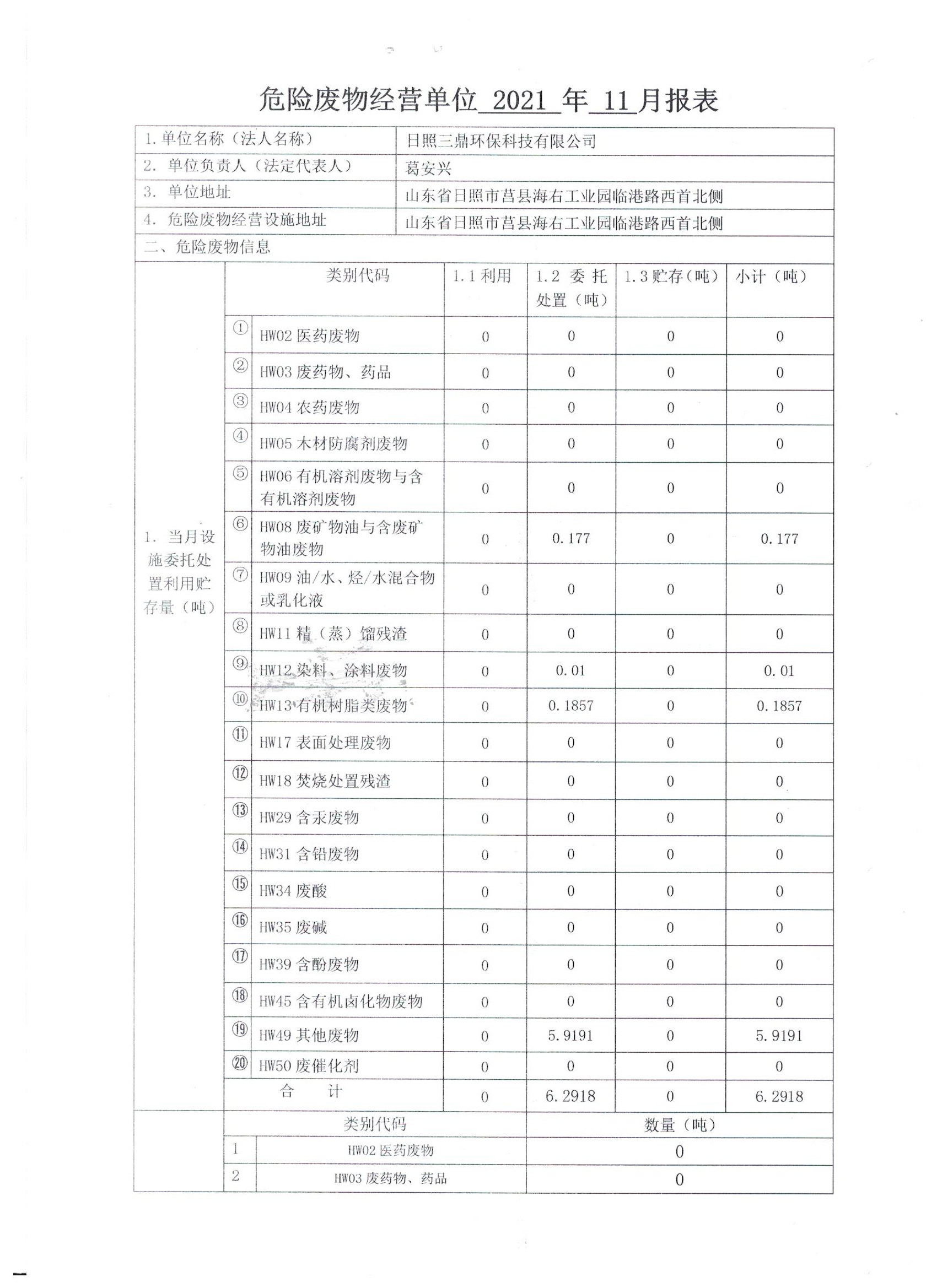 2021年11月产生和经营