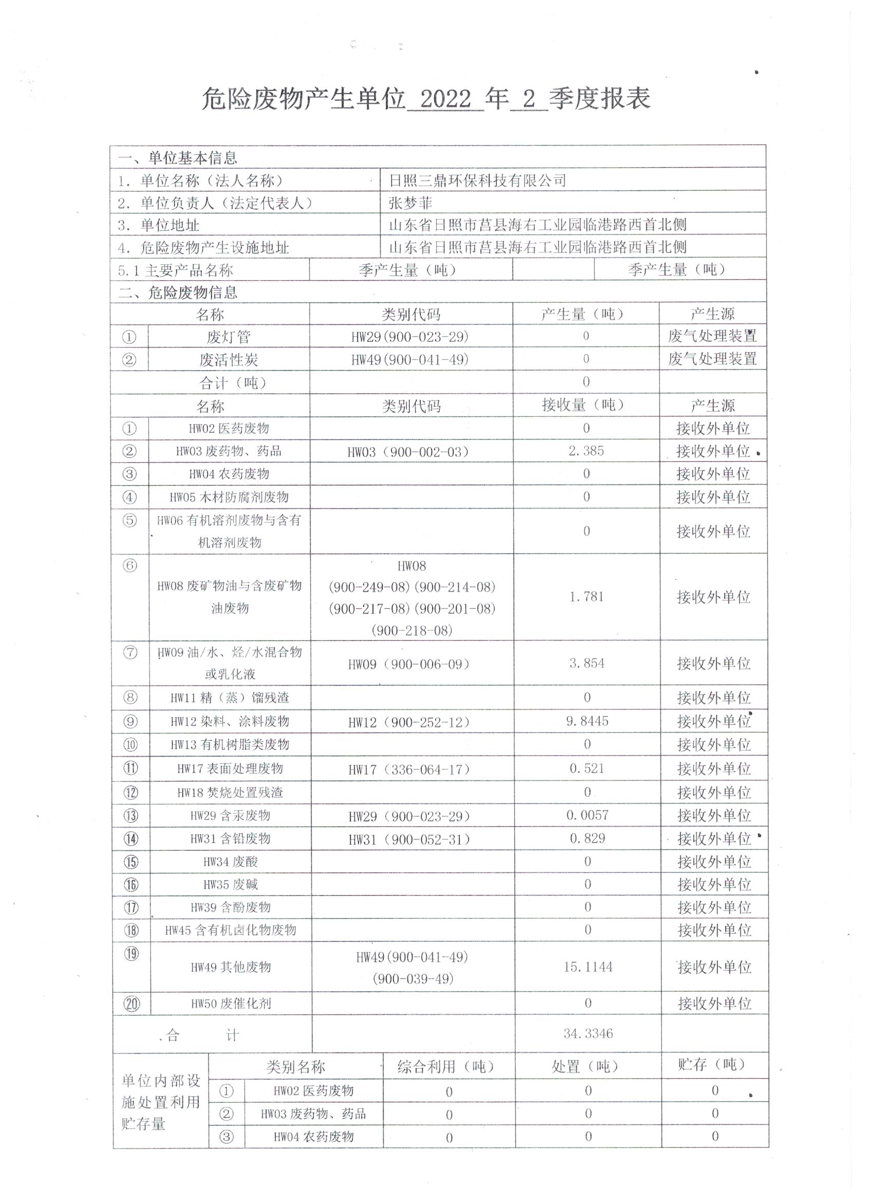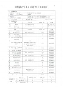 危险废物生产单位2022年2季度报表