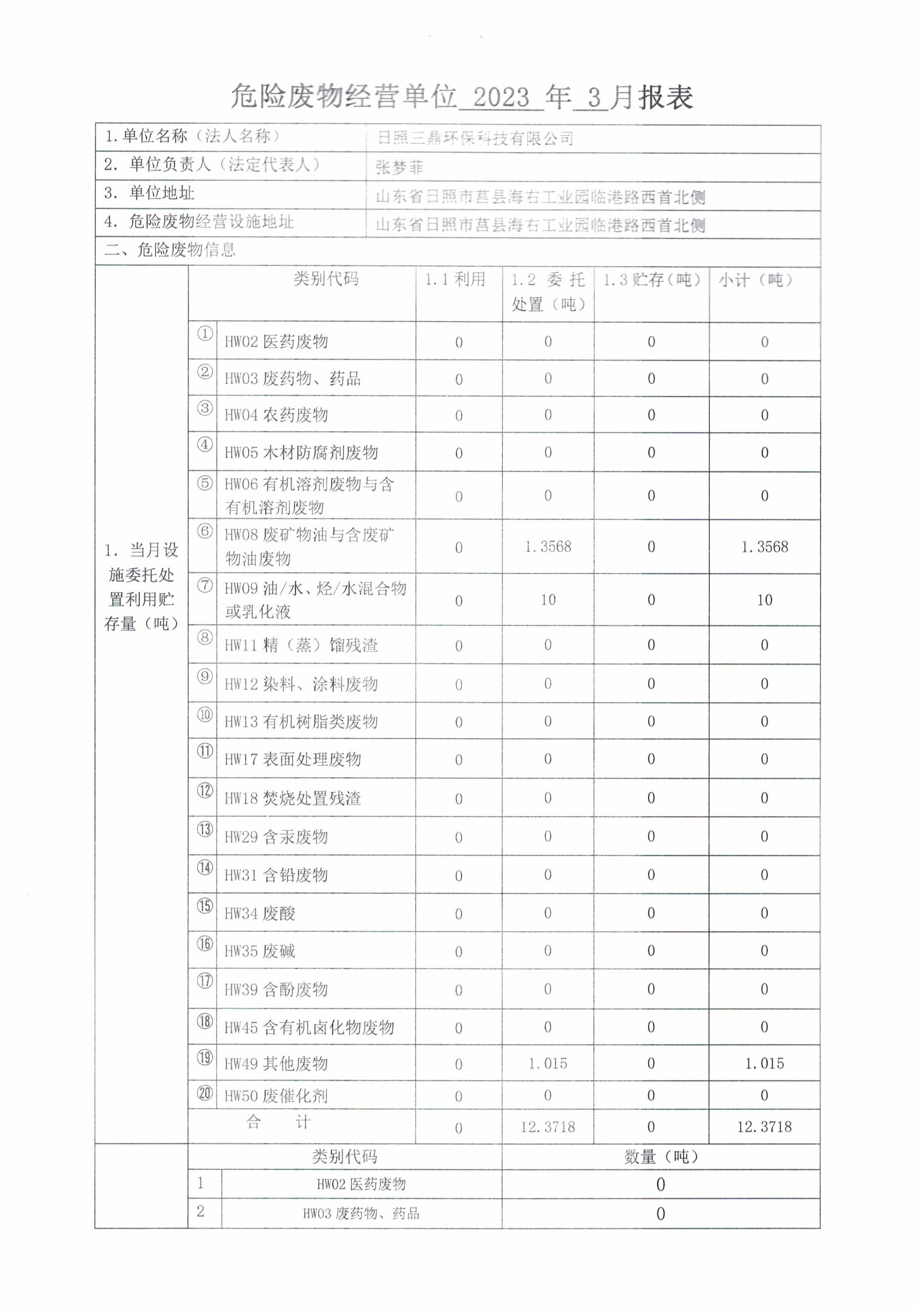 危险废物经营单位2023年3月报表