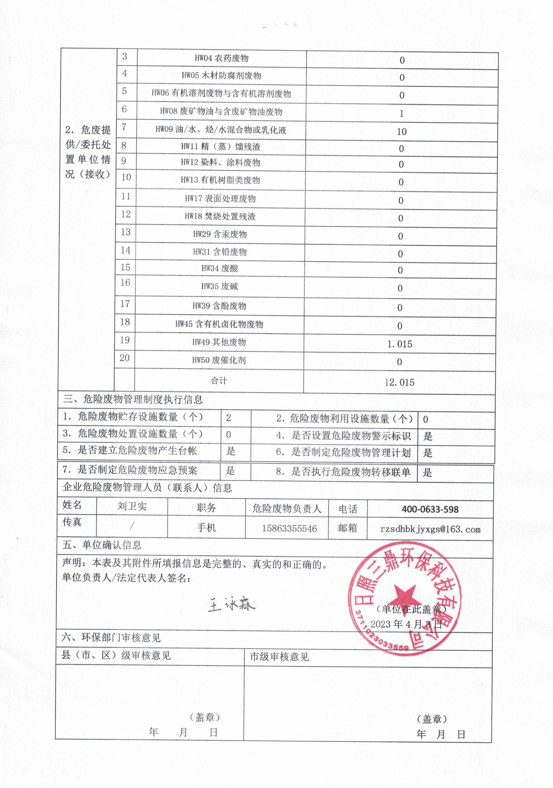 危险废物4月报表