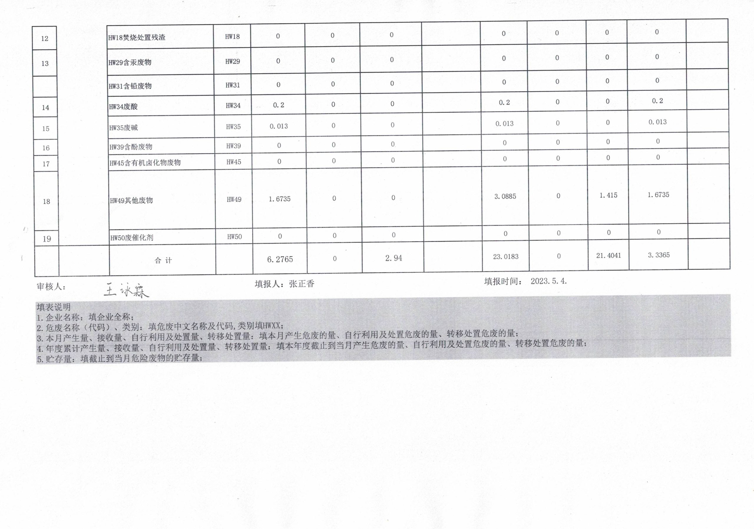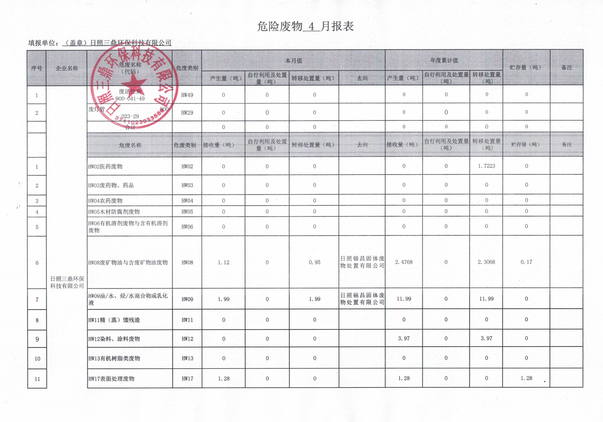 危险废物4月报表