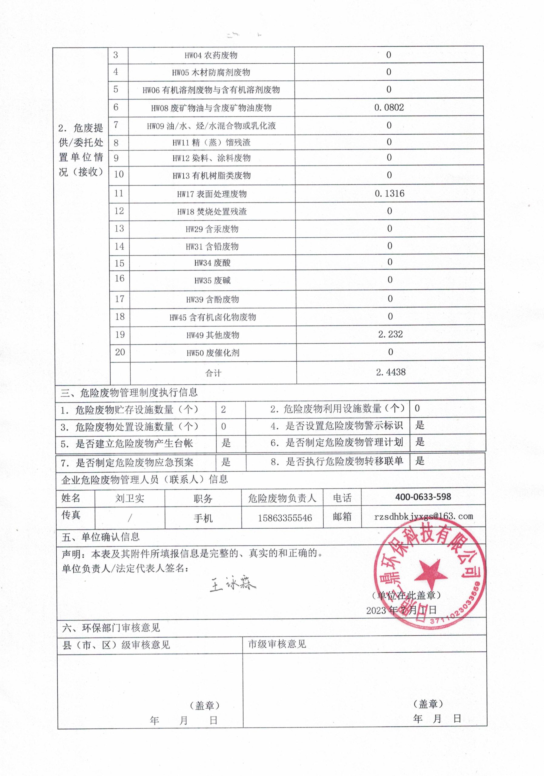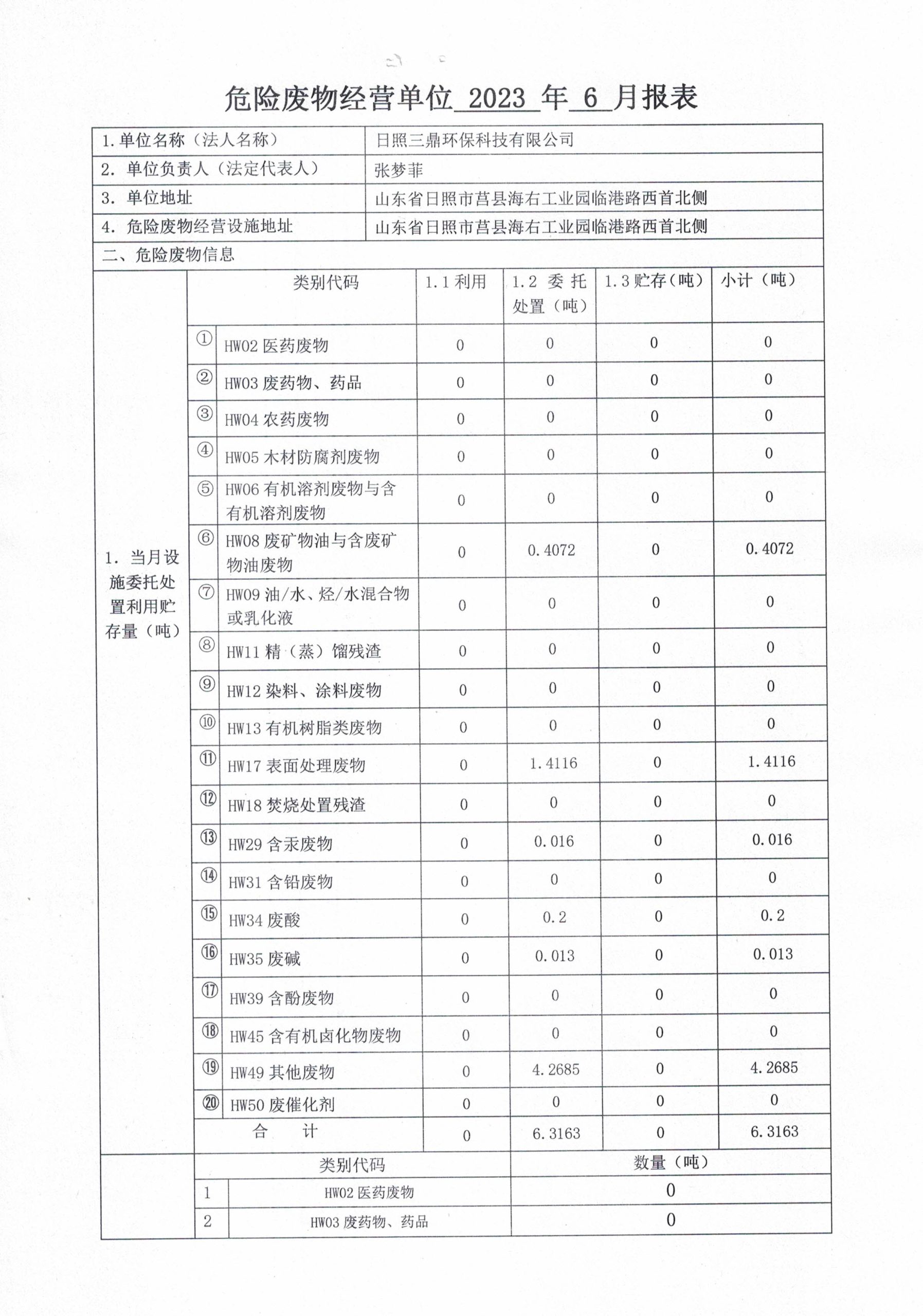 危险废物6月报表
