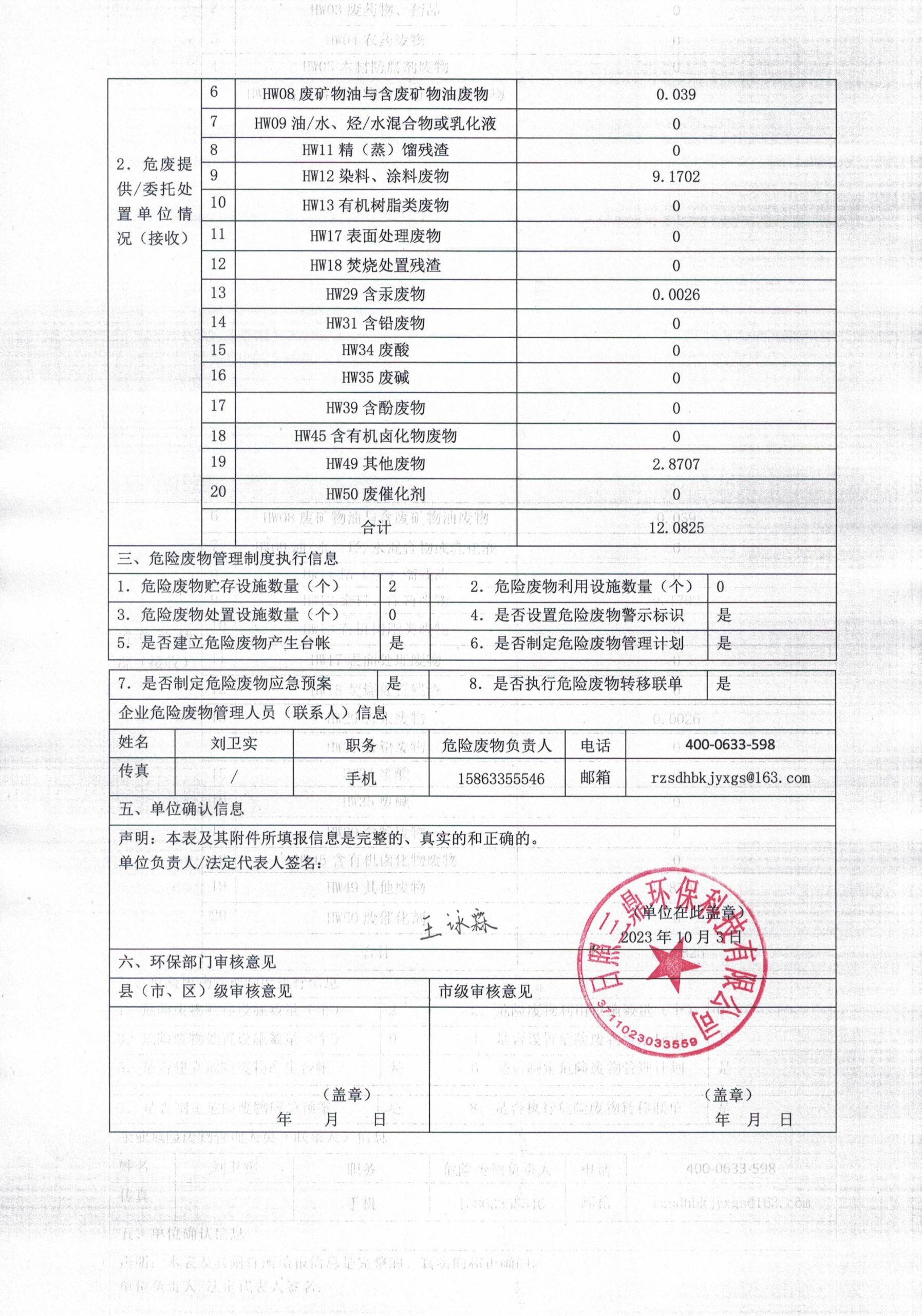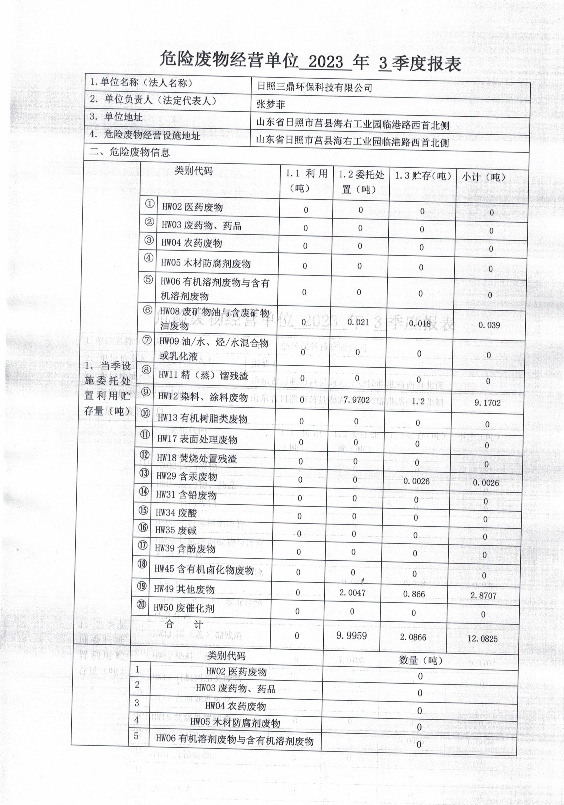 危险废物产生单位2023年3季度报表