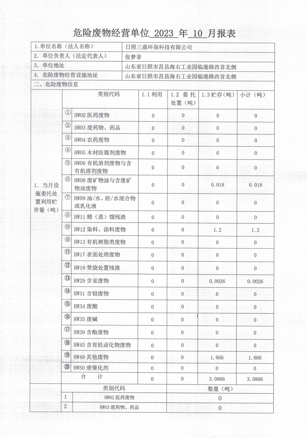 危险废物10月报表
