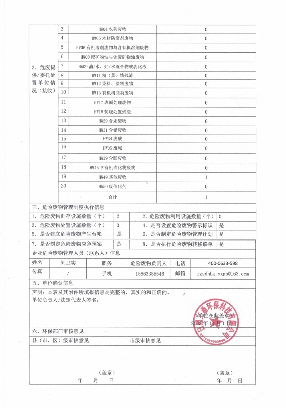 危险废物经营单位2023年10月报表