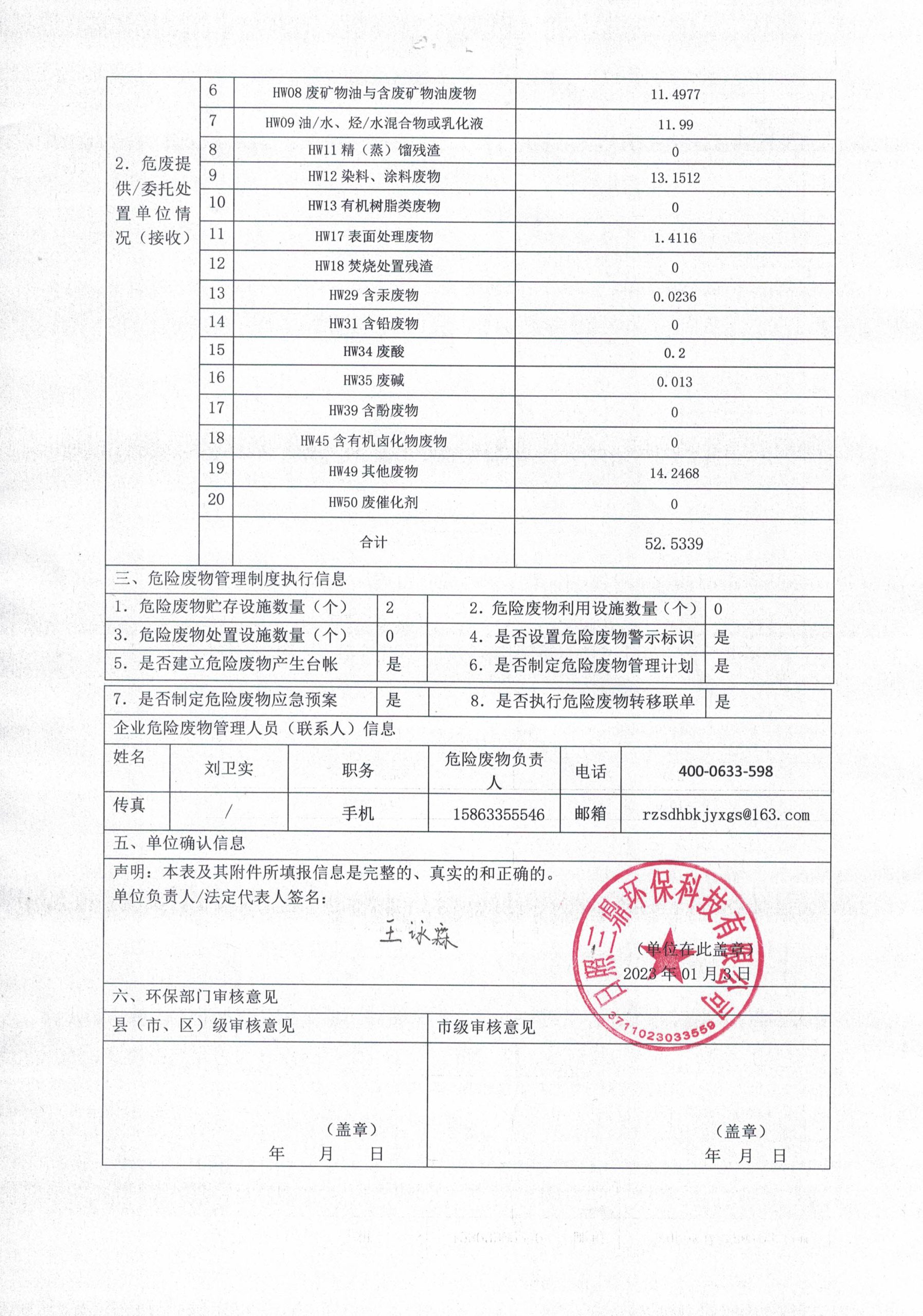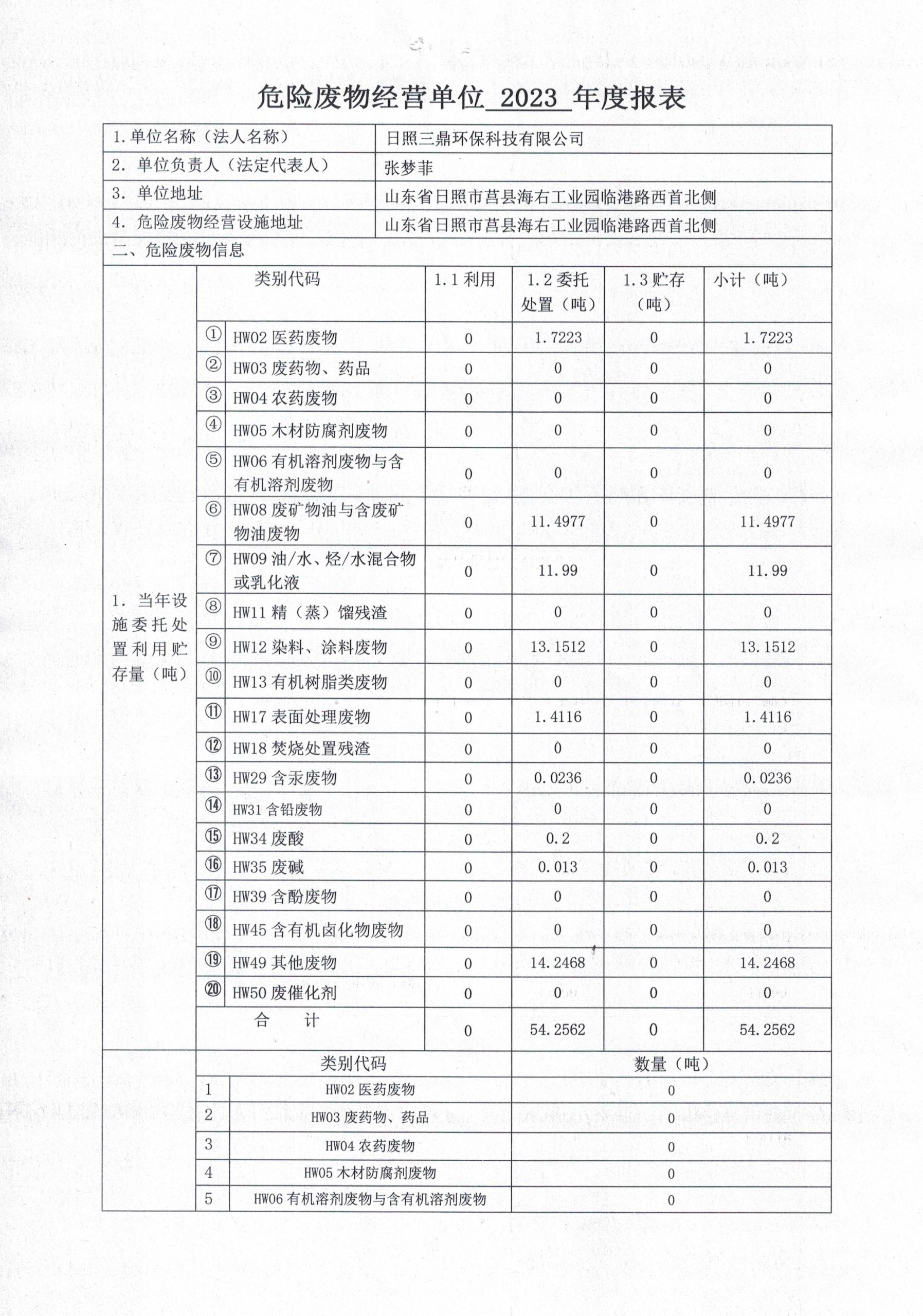 危险废物生产单位2023年度报表