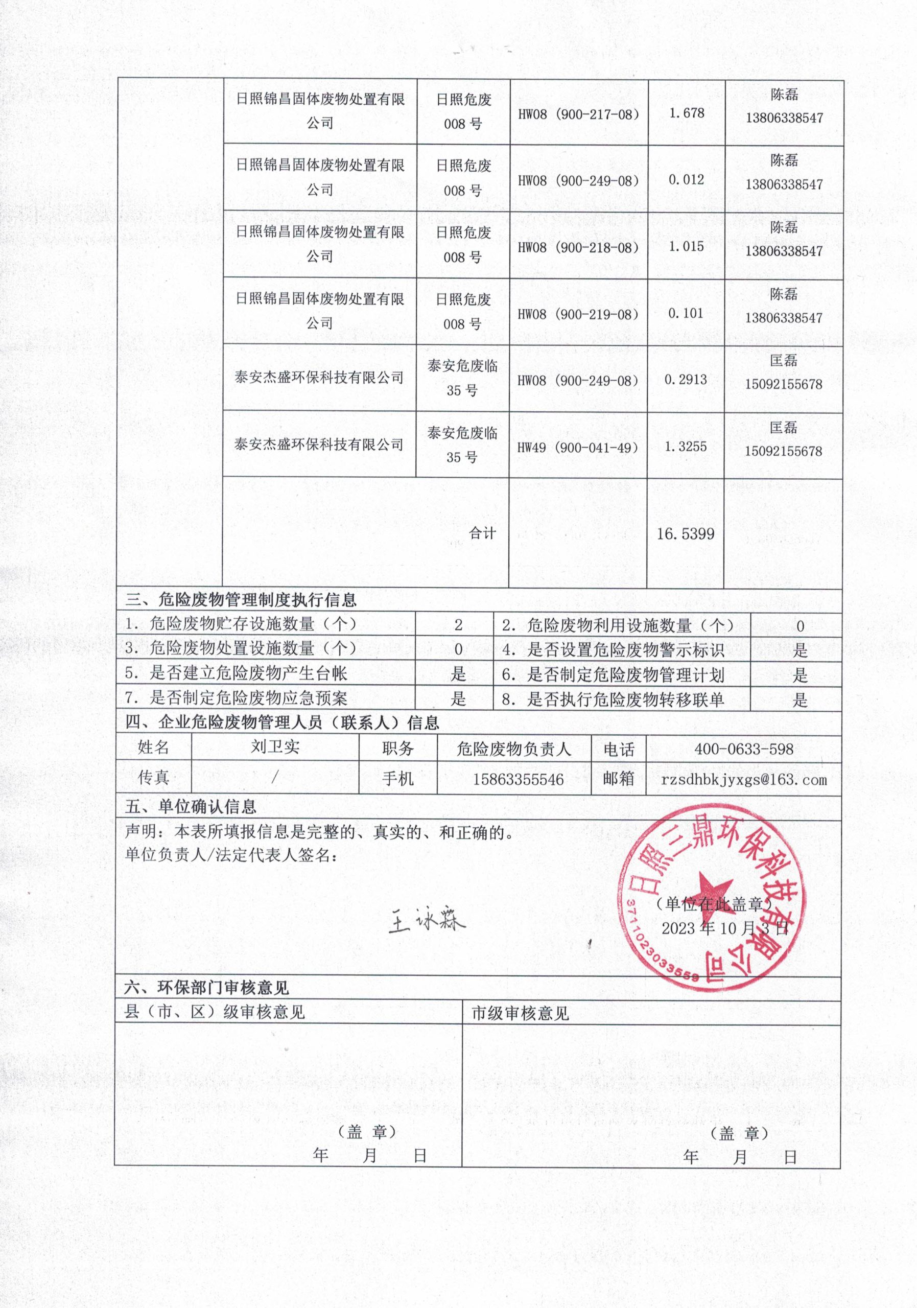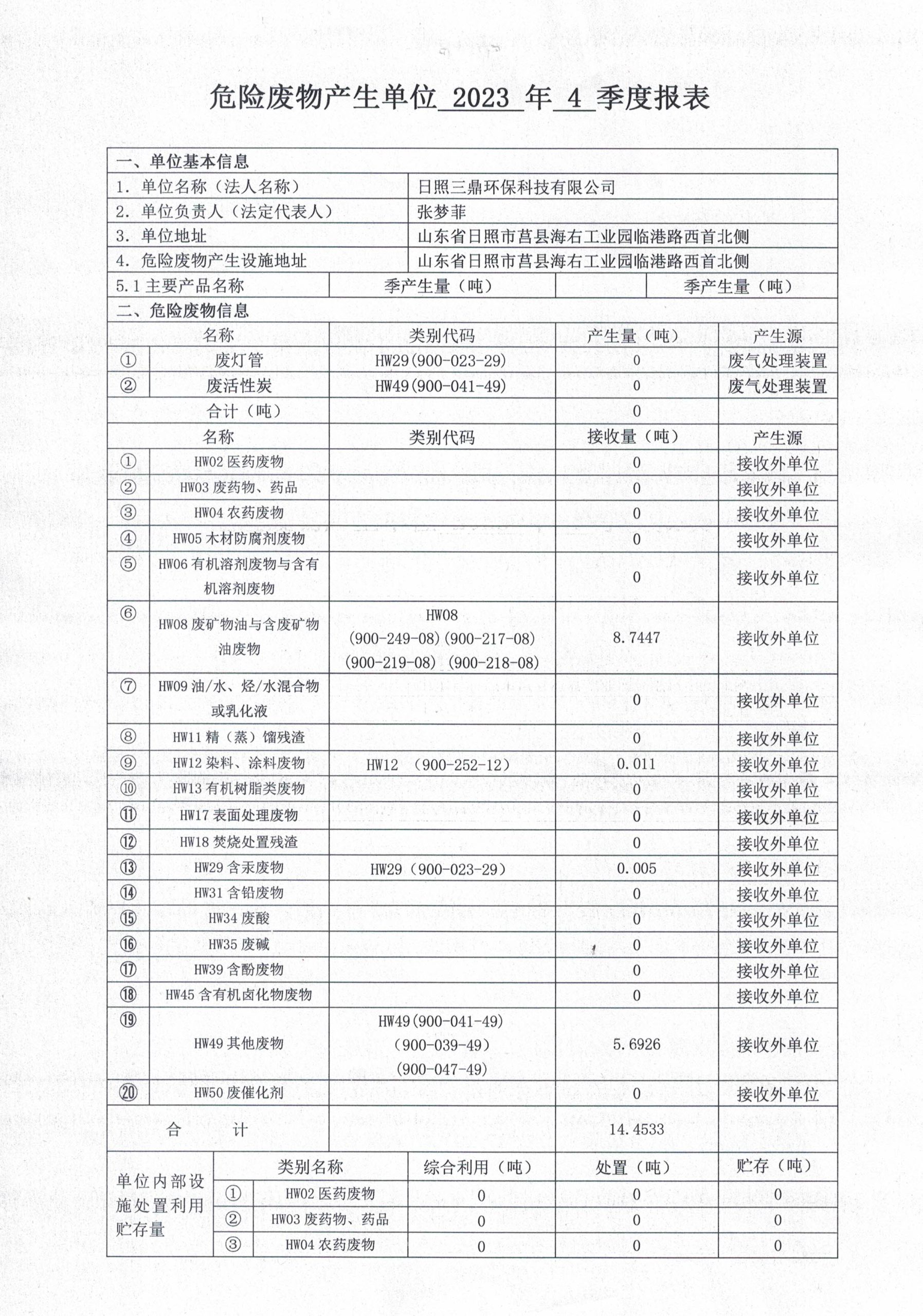 危险废物产生单位2023年4季度报表
