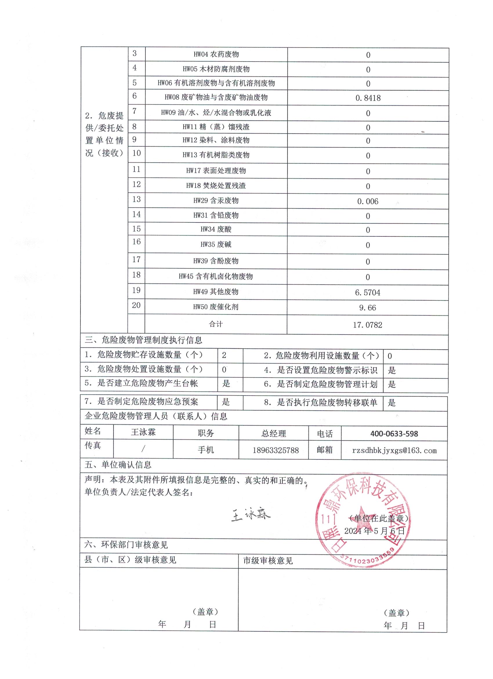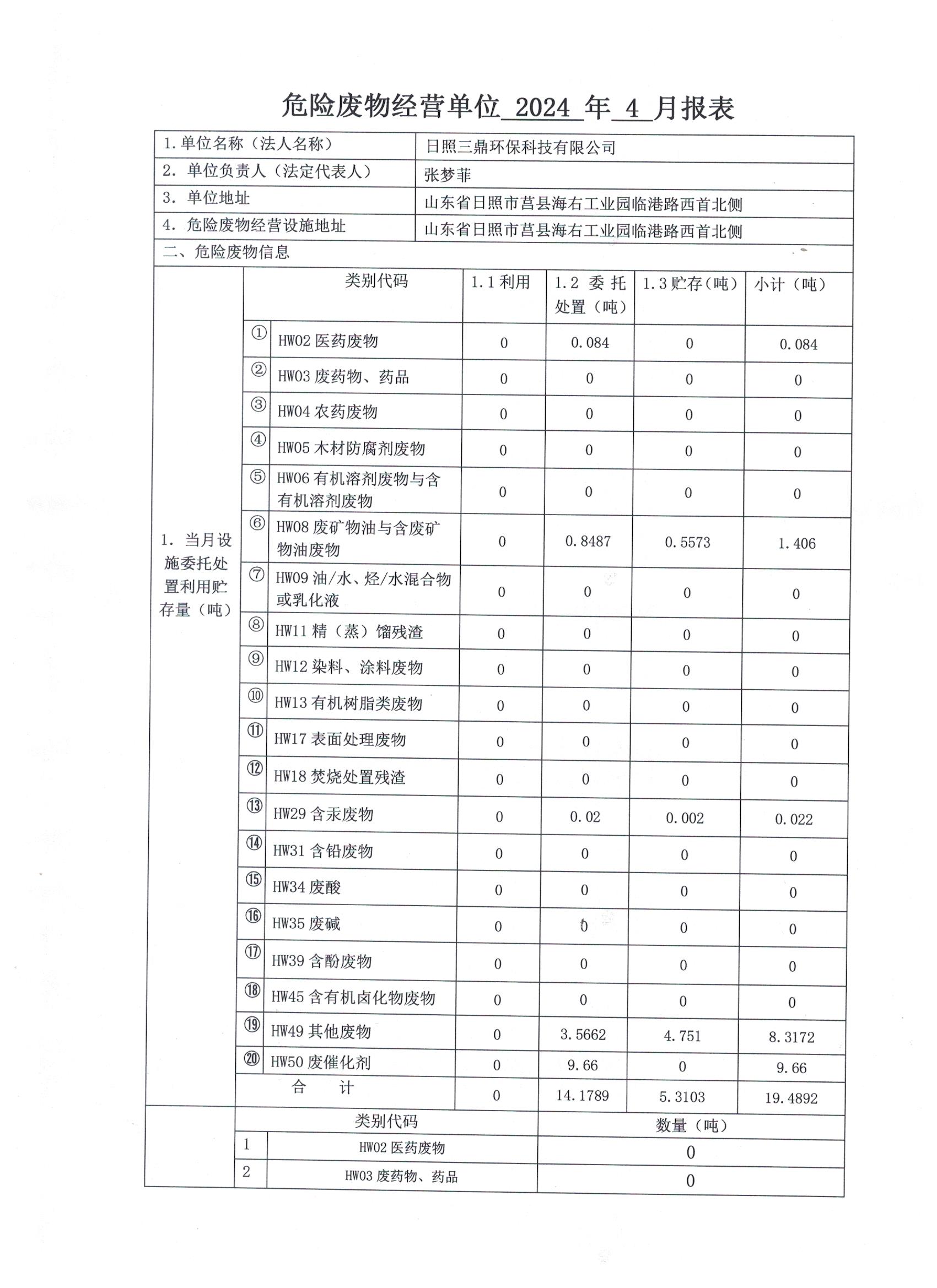 危险废物经营单位2024年4月报表