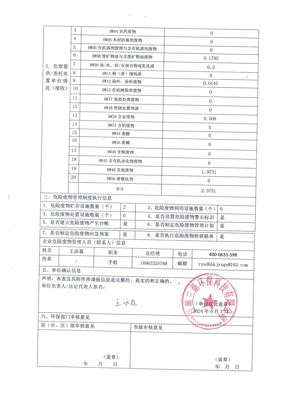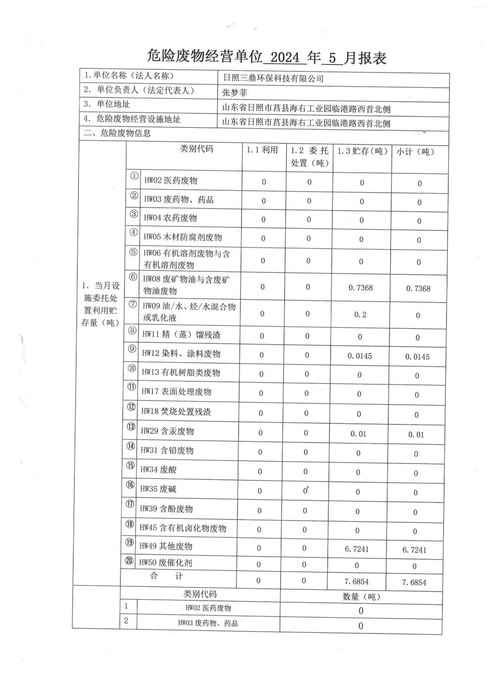 危险废物经营单位2024年5月报表