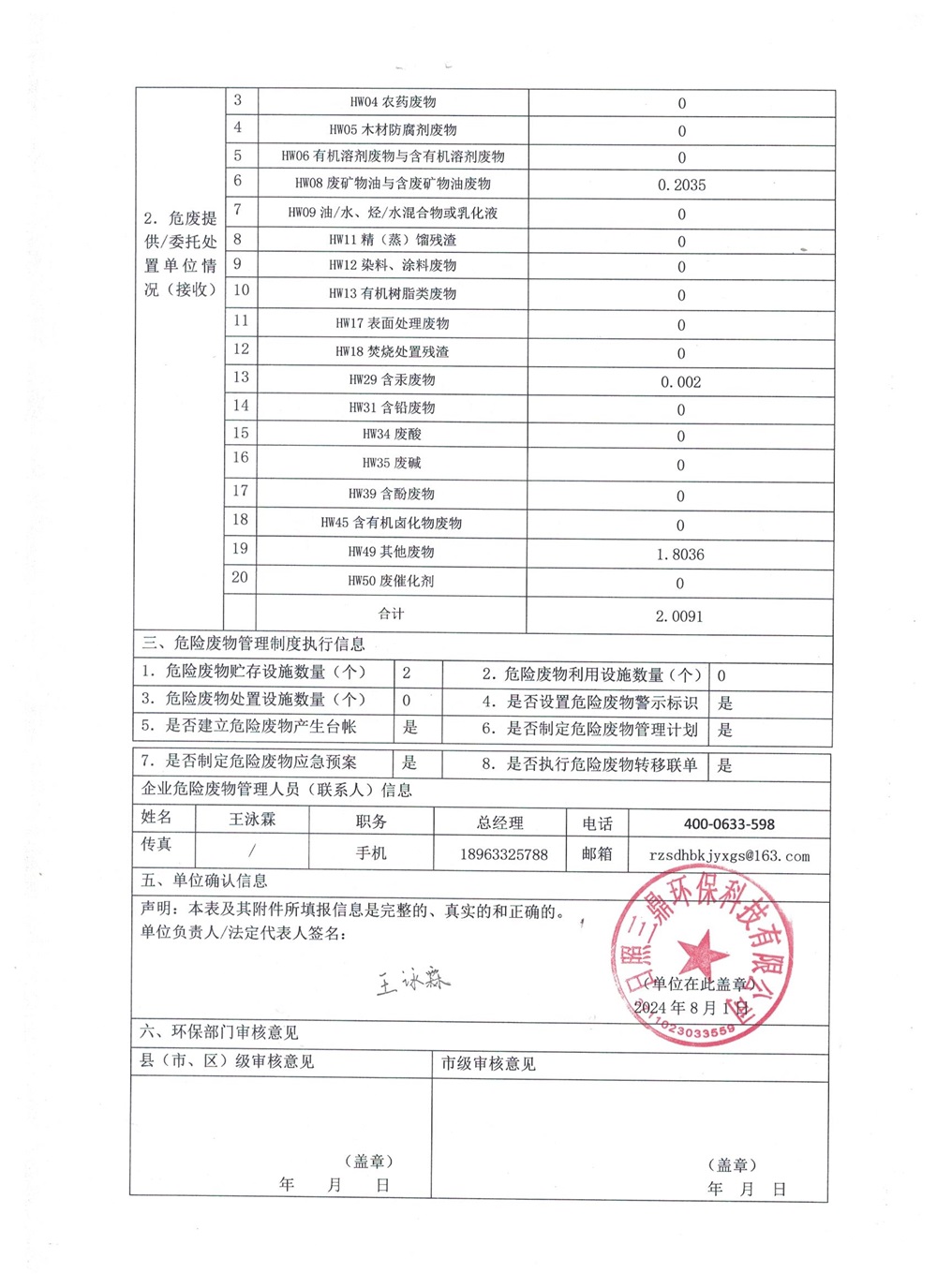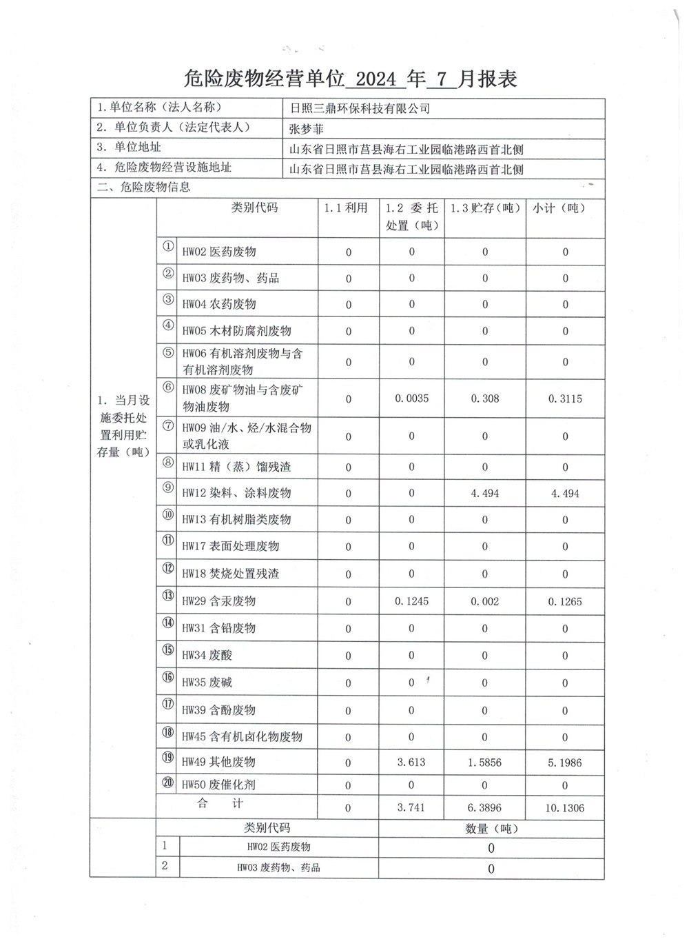 危险废物经营单位2024年7月报表