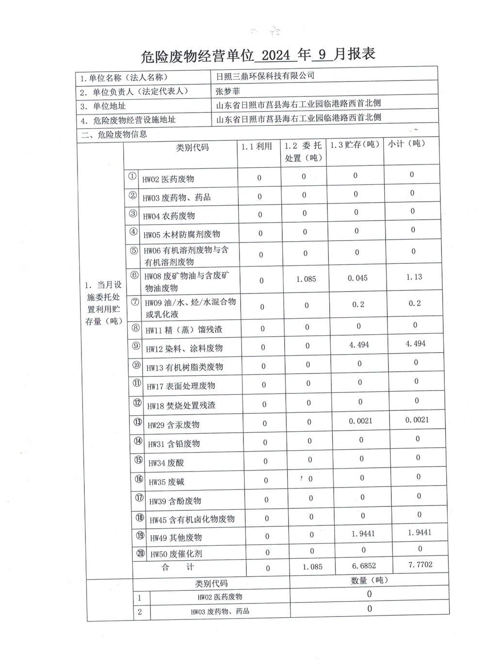 危险废物9月报表