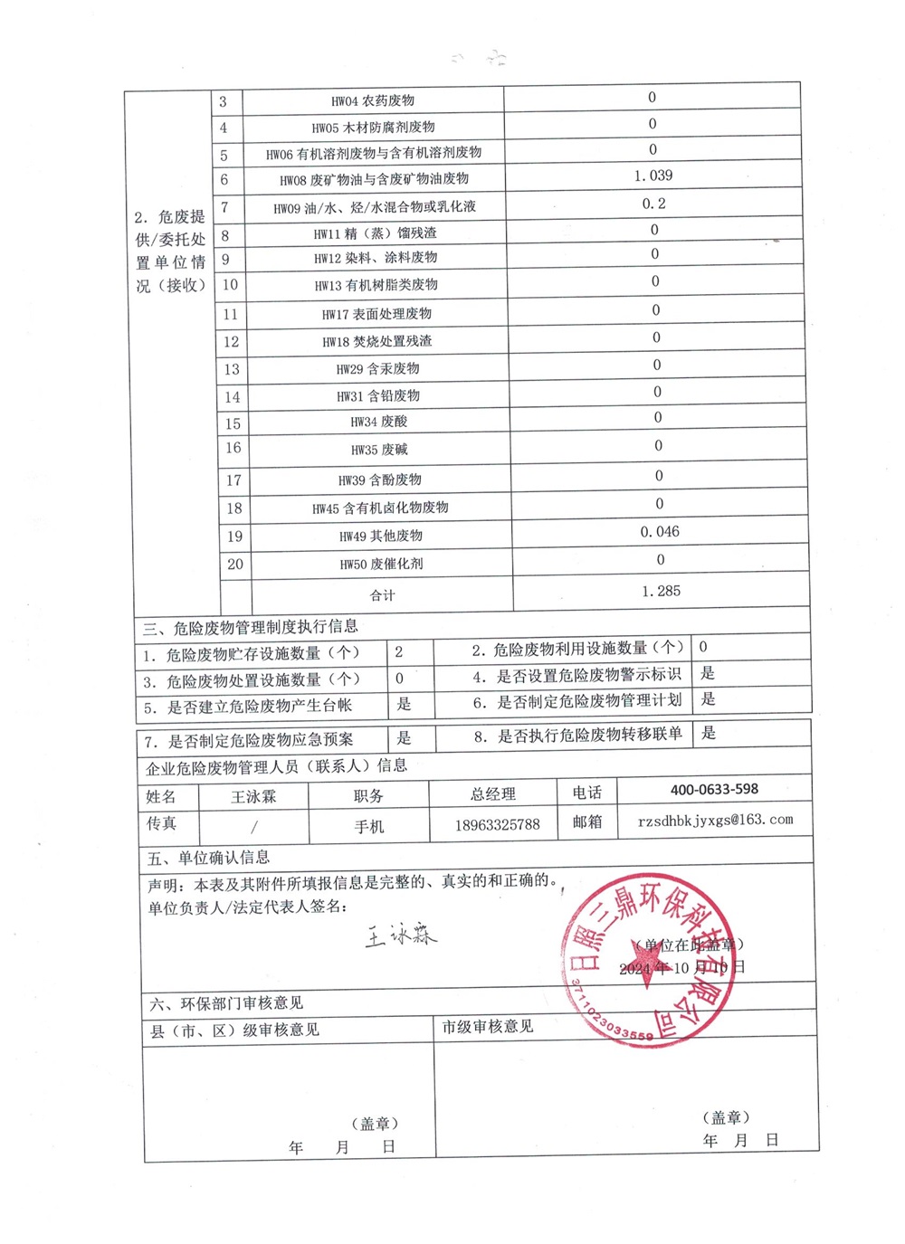 危险废物产生单位2024年1季度报表