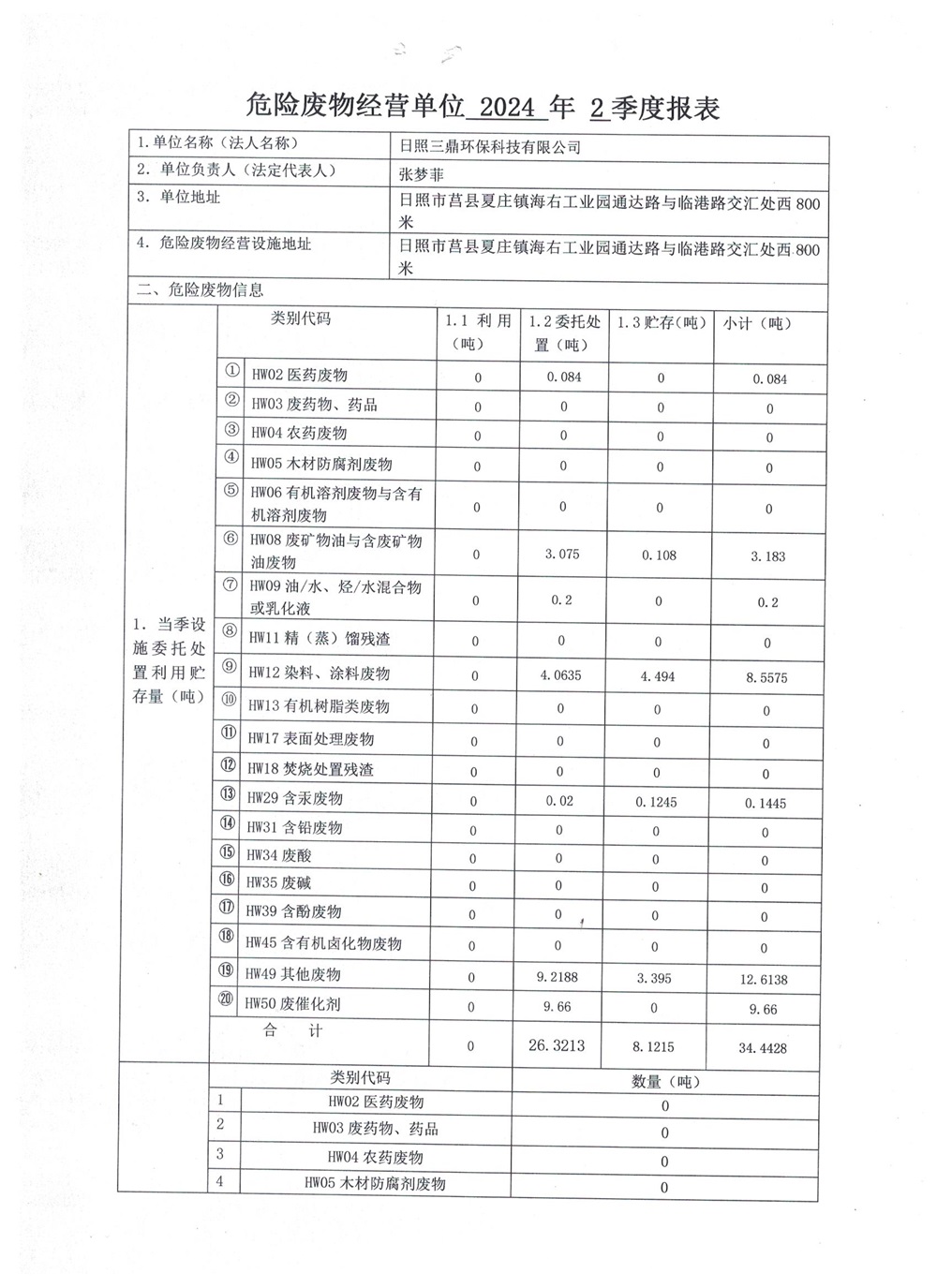 危险废物经营单位2024年2季度报表