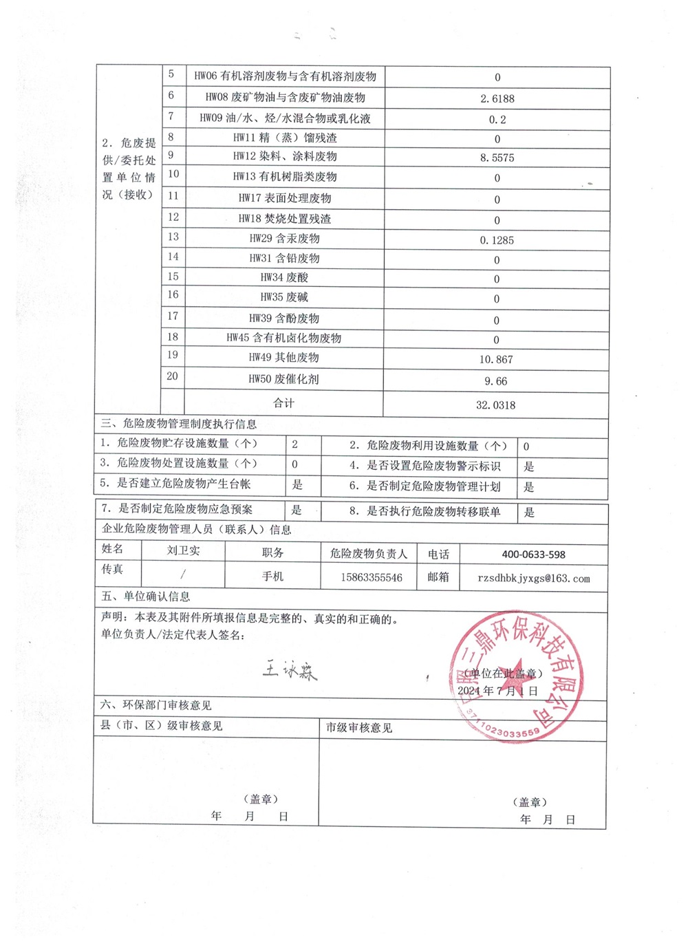 危险废物产生单位2024年2季度报表
