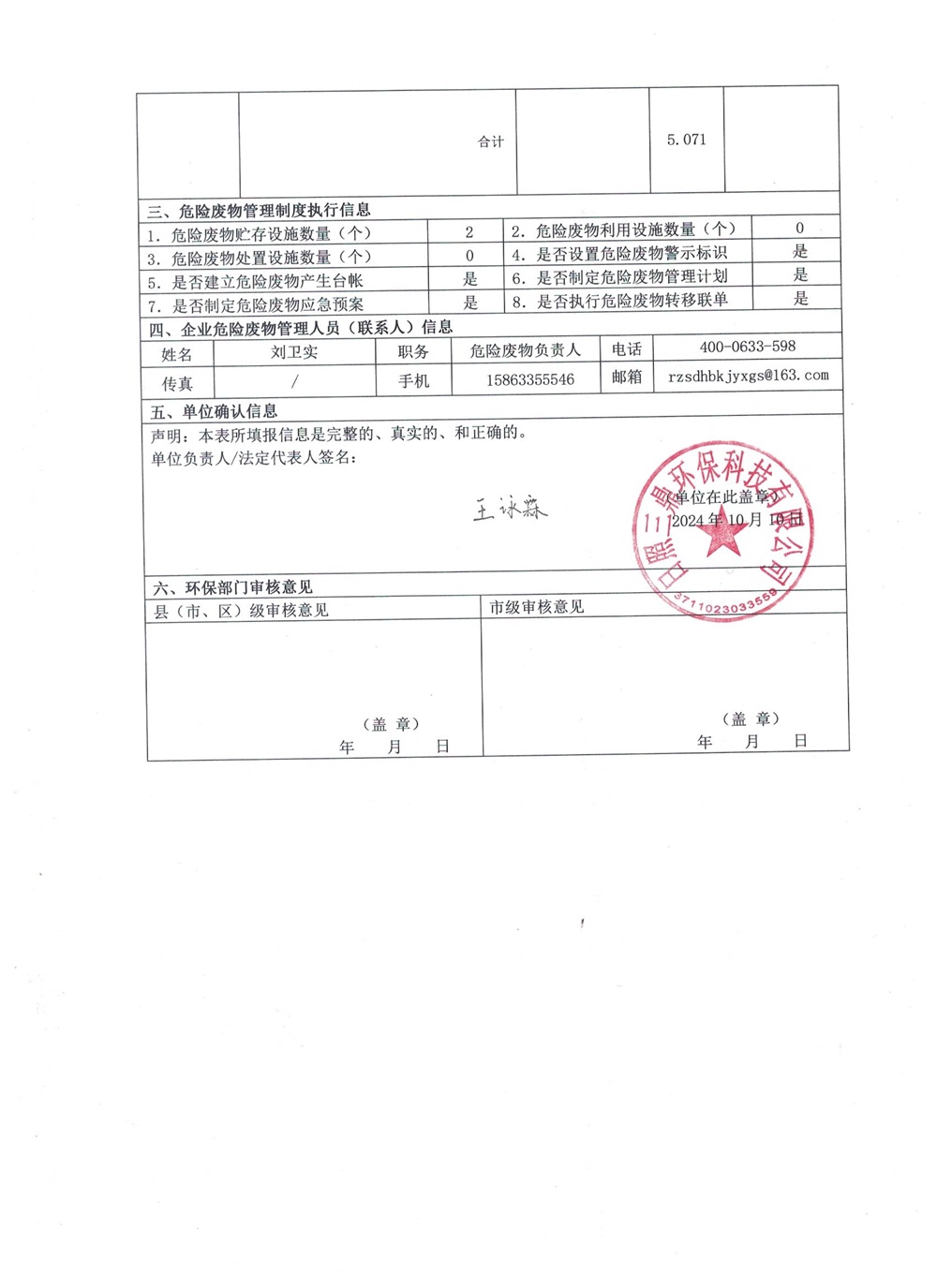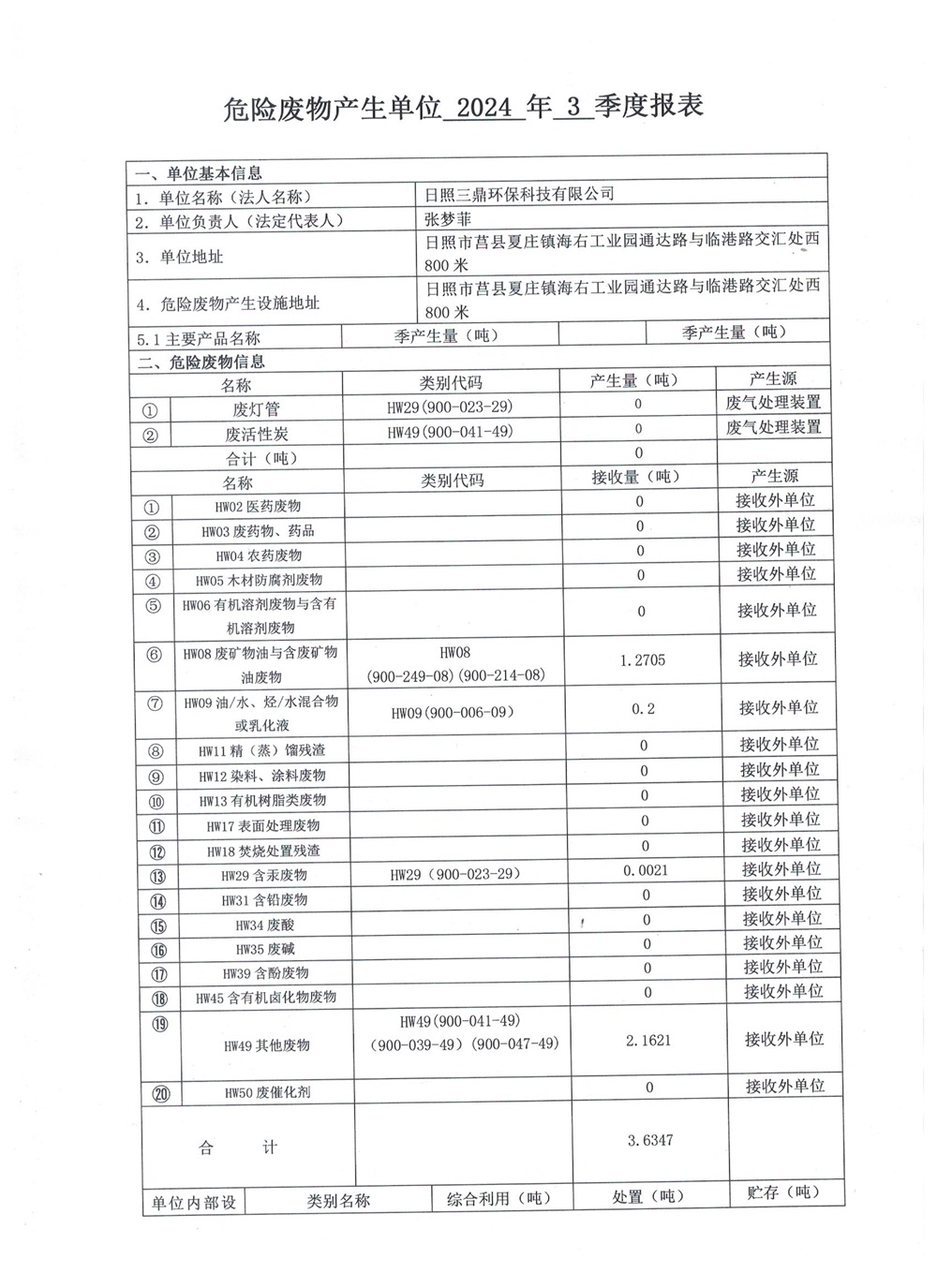 危险废物产生单位2024年3季度报表