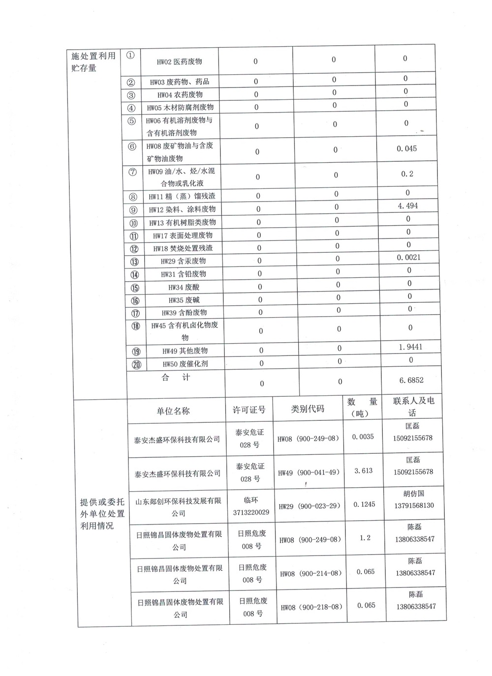危险废物经营单位2024年2季度报表