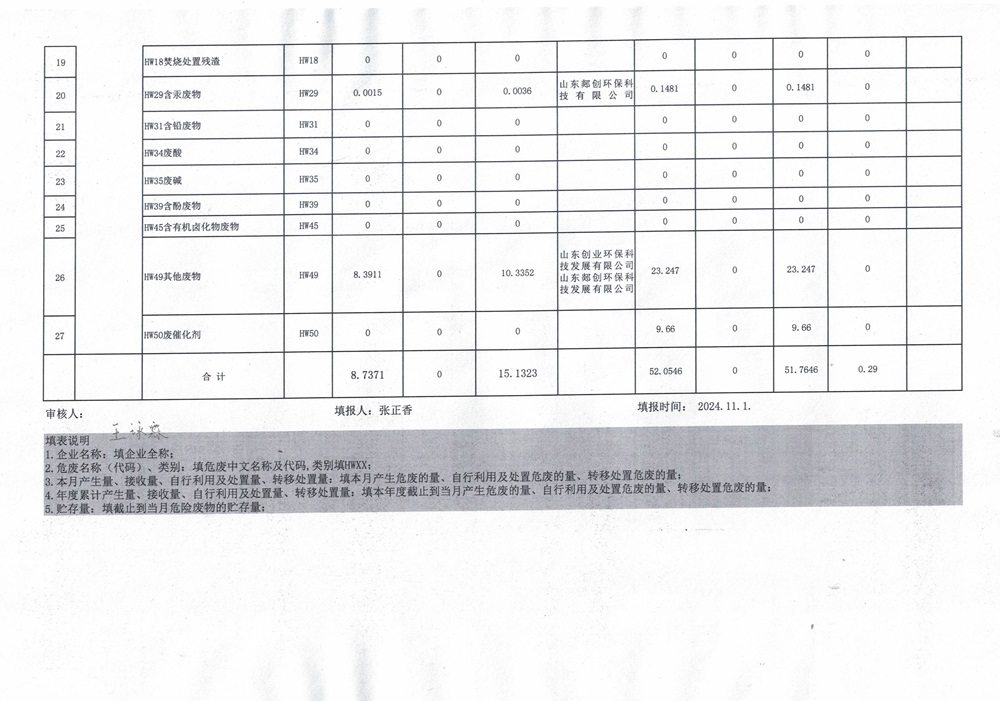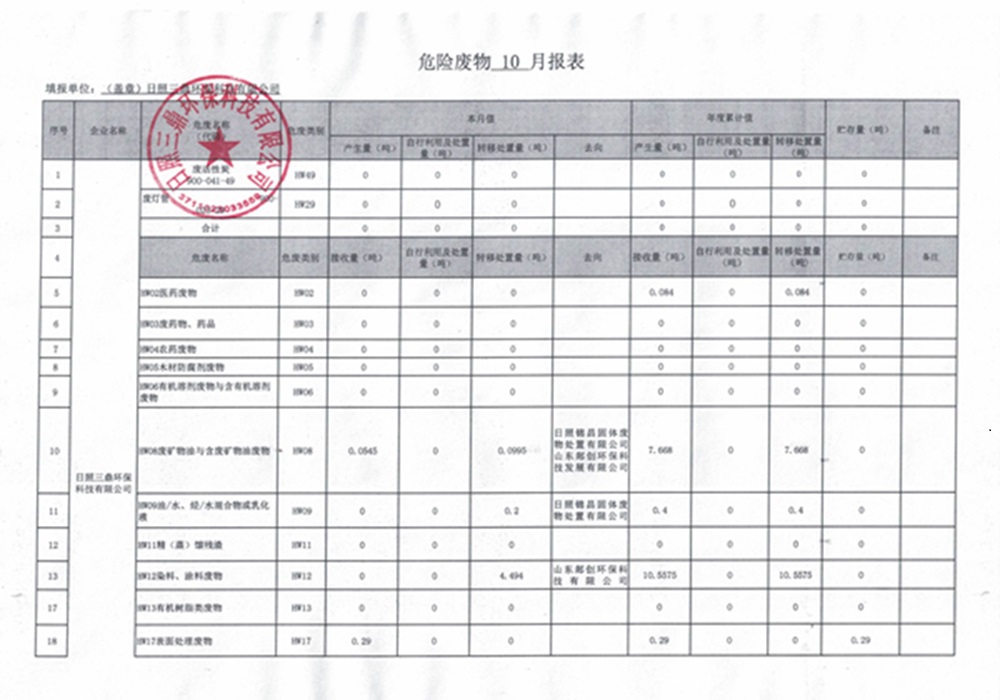 危险废物(10月)报表