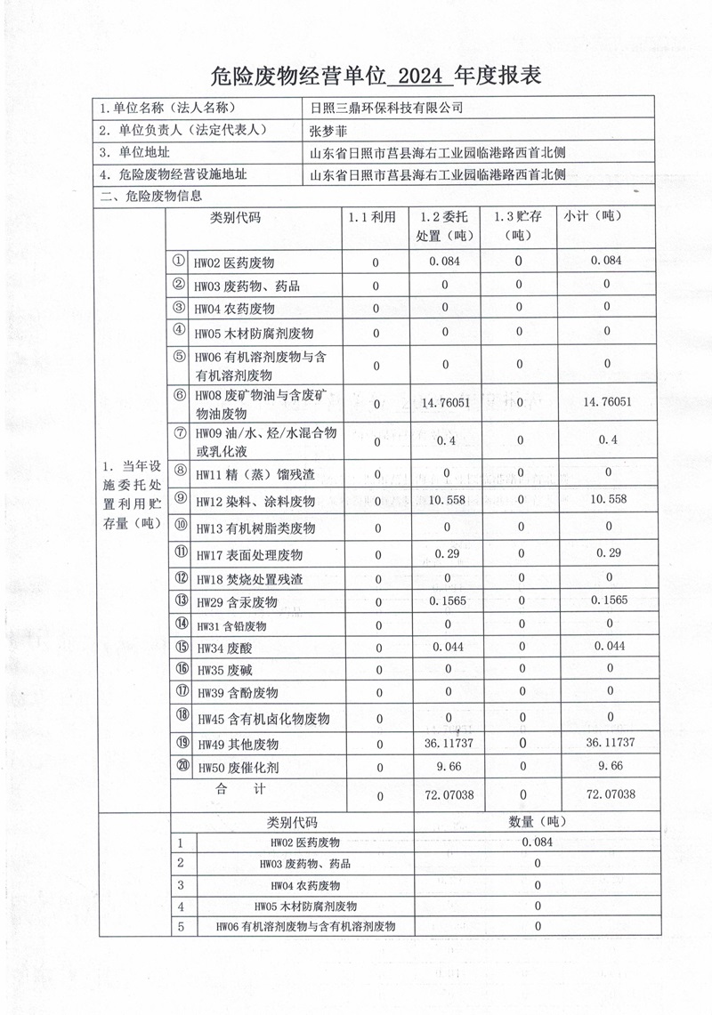 危险废物生产单位2024年度报表