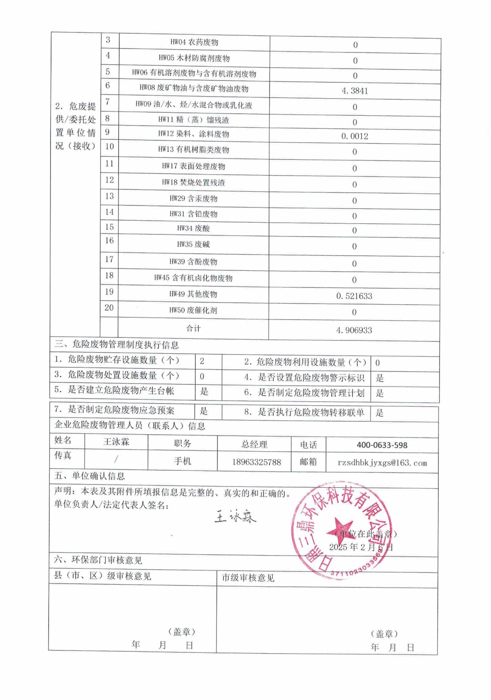 危险废物2月报表
