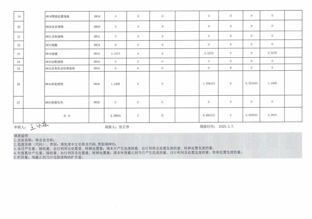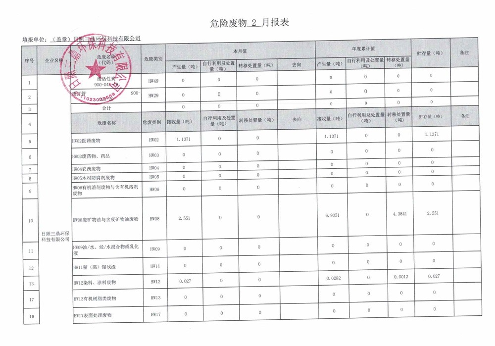 危险废物2月报表