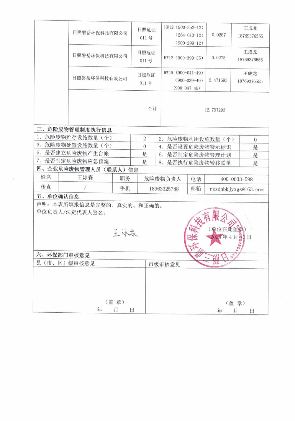 危险废物经营单位2025年4月报表