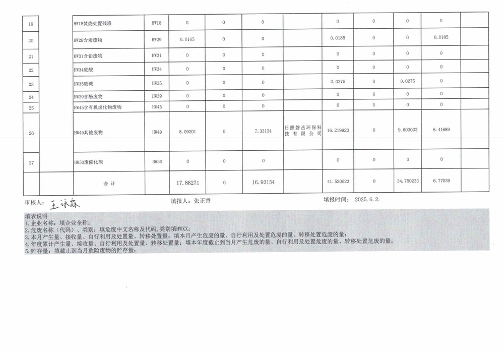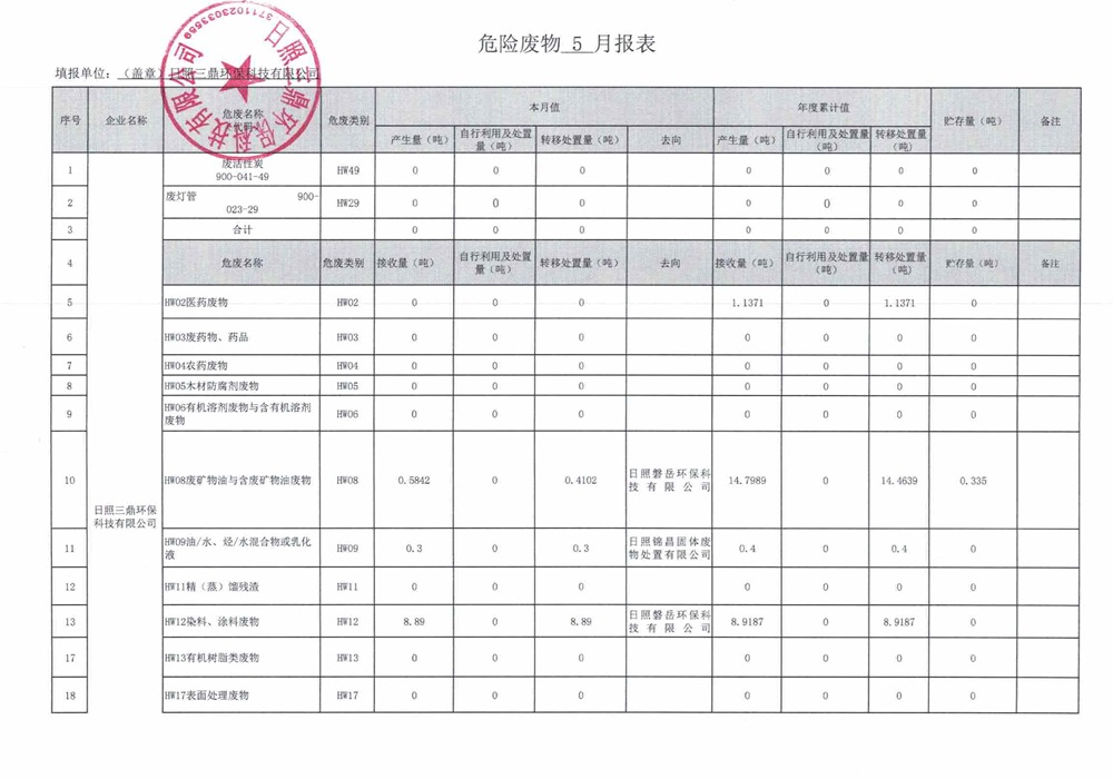 危险废物5月报表