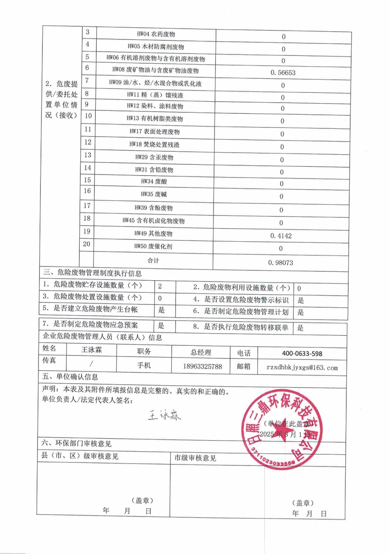 危险废物8月报表
