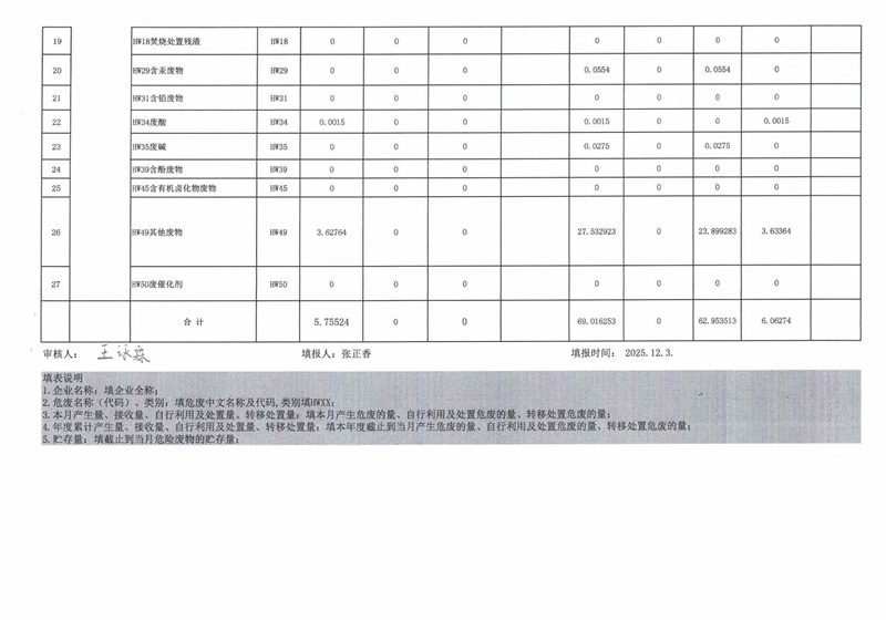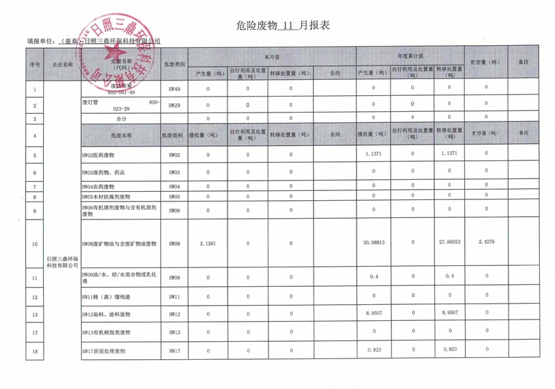 危险废物11月报表