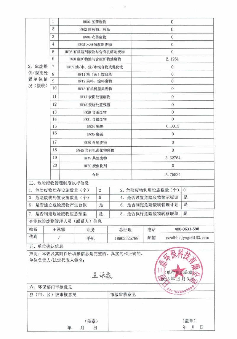 危险废物12月报表
